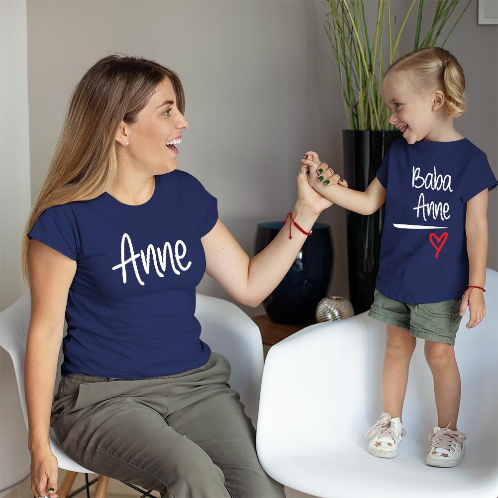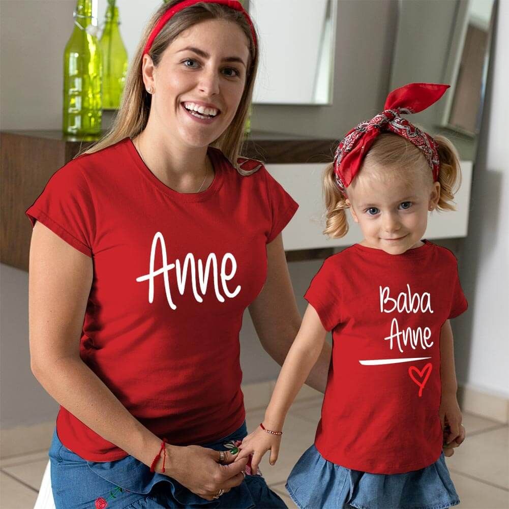 Anne Baba Sevgisi Tasarımlı Anne ve Kız Çocuk Kombini