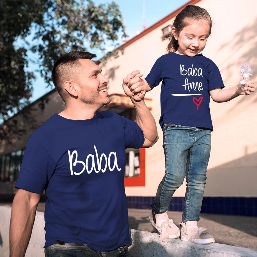 Anne Baba Sevgisi Tasarımlı Baba ve Kız Çocuk Kombini