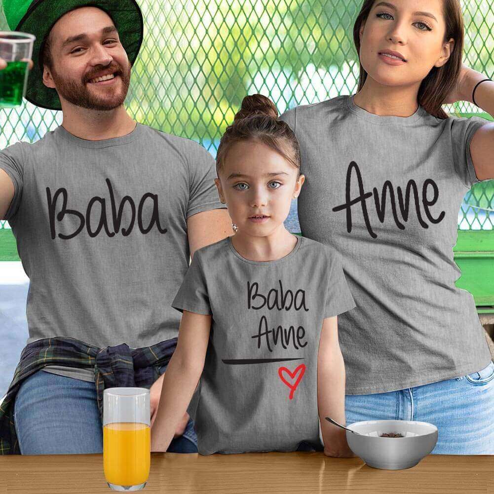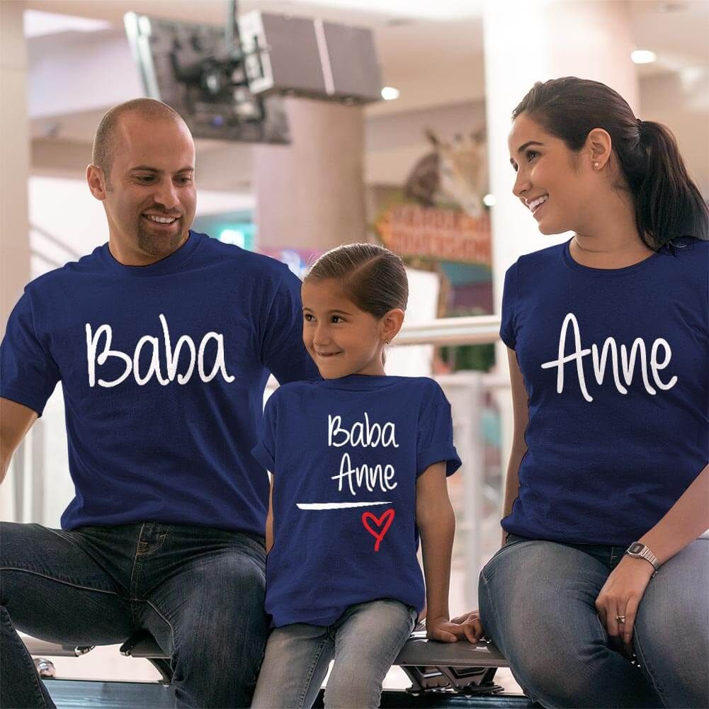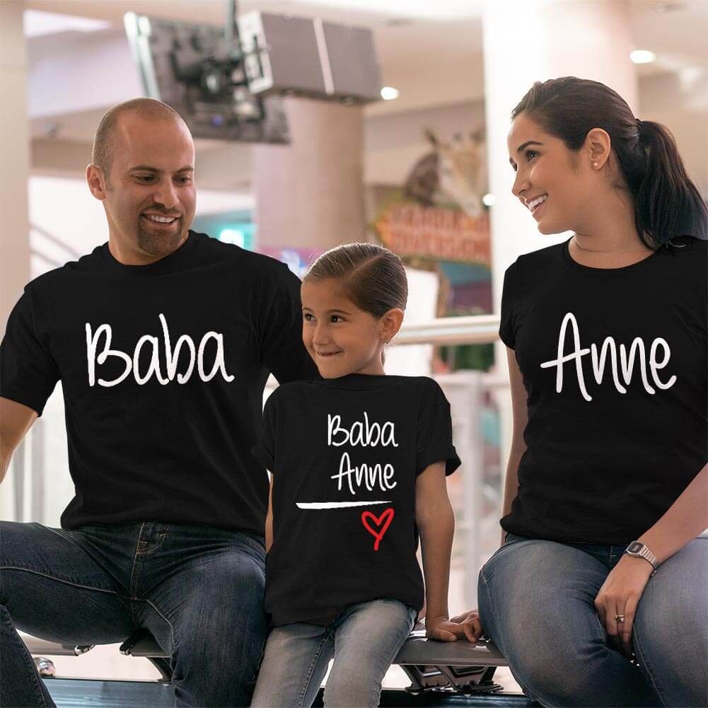 Anne Baba Sevgisi Tasarımlı Baba,Anne ve Kız Çocuk Kombini