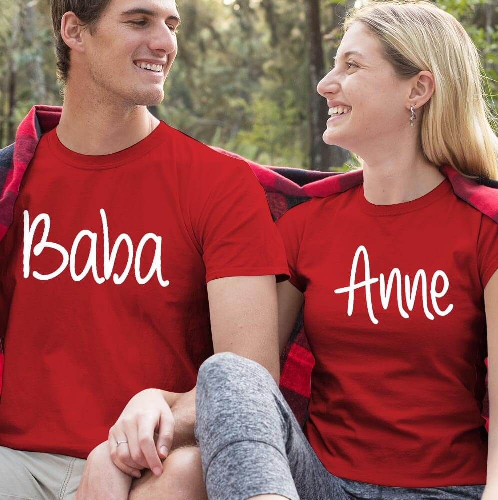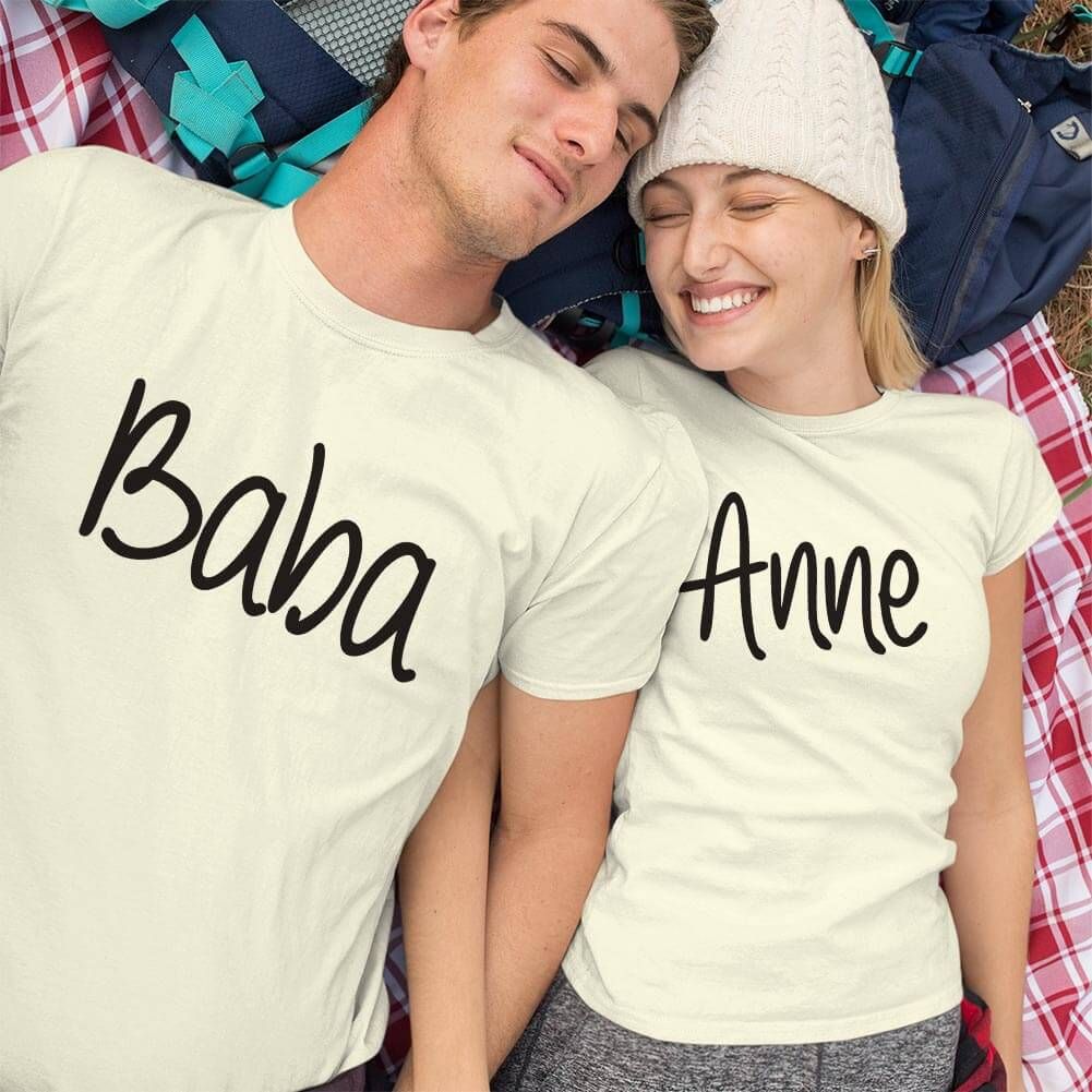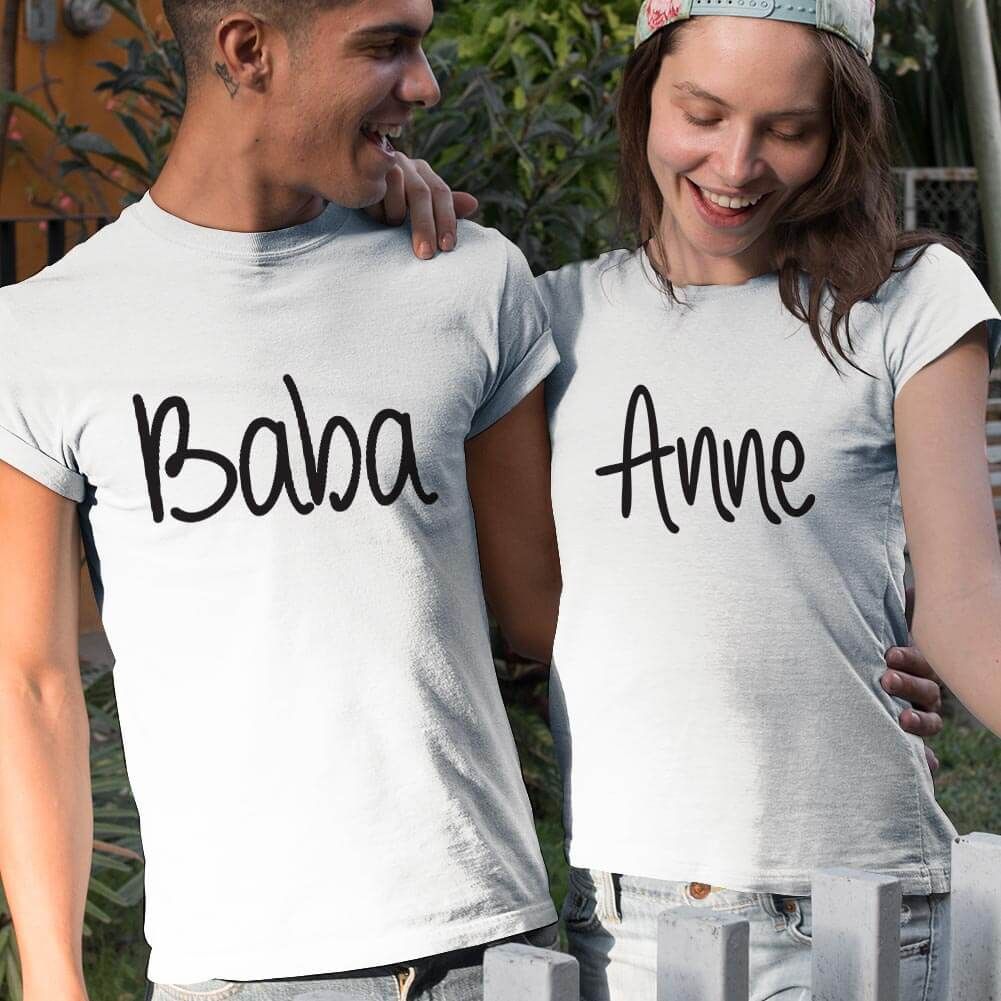 Anne Baba Yazılı Sevgili Tişört Kombini
