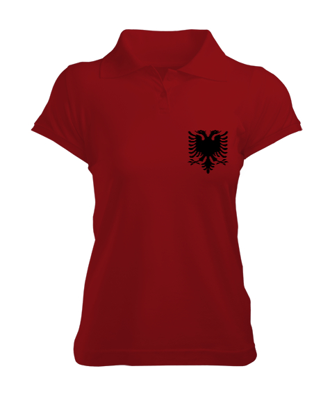 Arnavutluk,albania,Arnavutluk Bayrağı,Arnavutluk logosu,albania flag. Kırmızı Kadın Polo Yaka Tişört