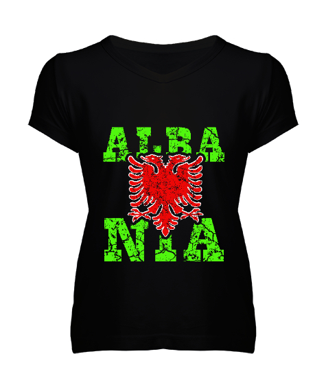 Arnavutluk,albania,Arnavutluk Bayrağı,Arnavutluk logosu,albania flag. Siyah Kadın V Yaka Tişört