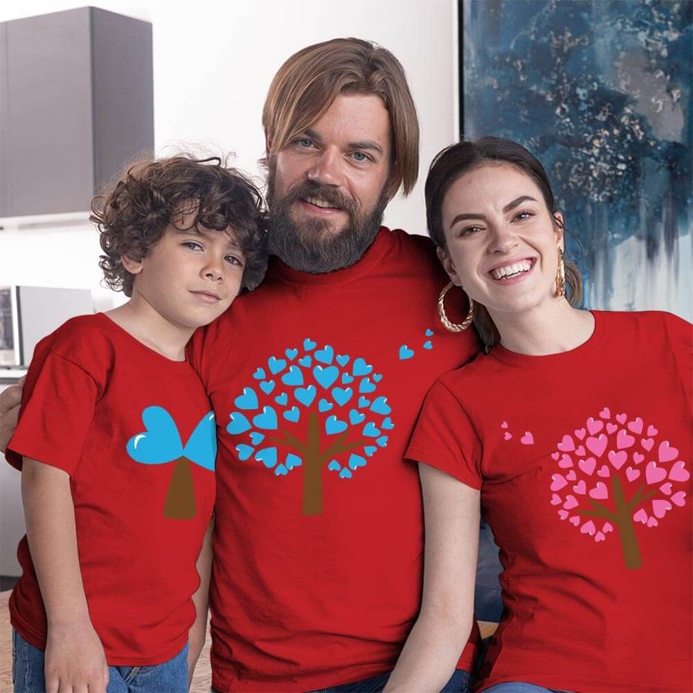 Aşk Ağaçları Anne Baba ve Erkek Çocuk Tişört Kombini