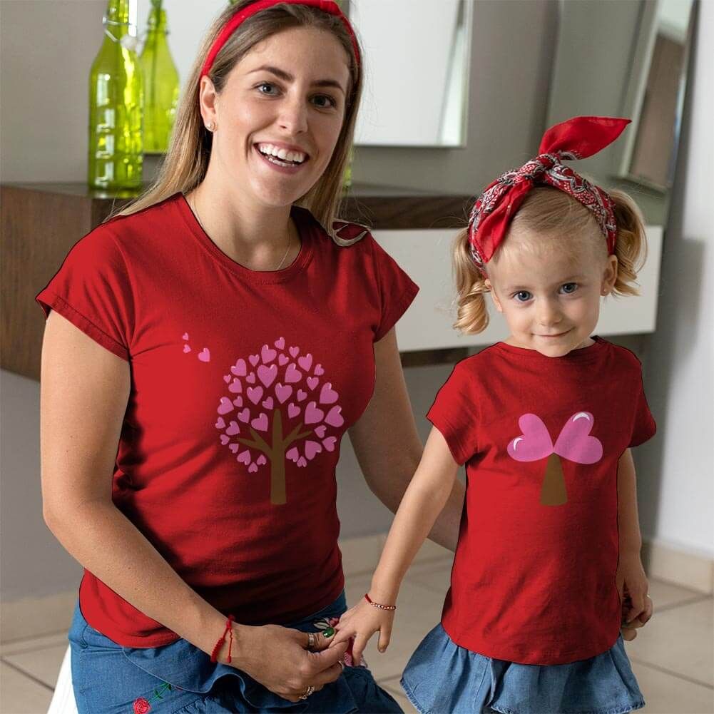 Aşk Ağaçları Anne Kız Çocuk Tişört Kombini