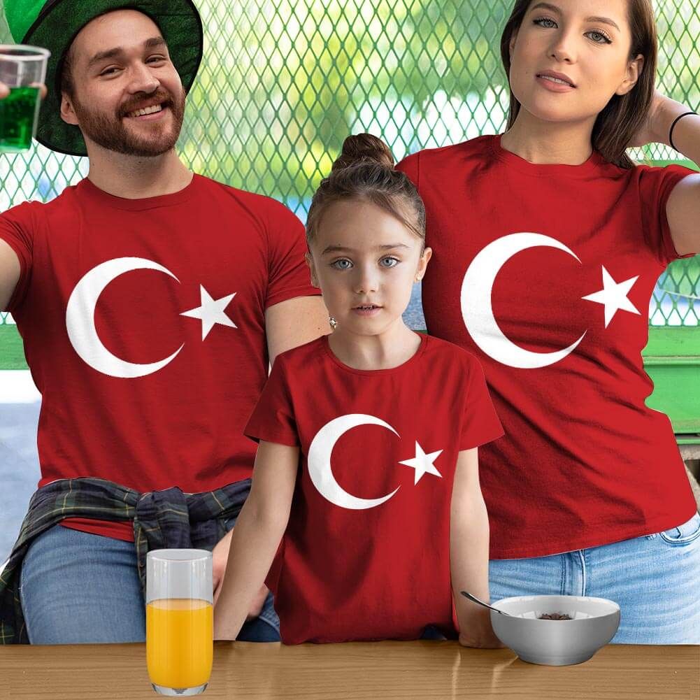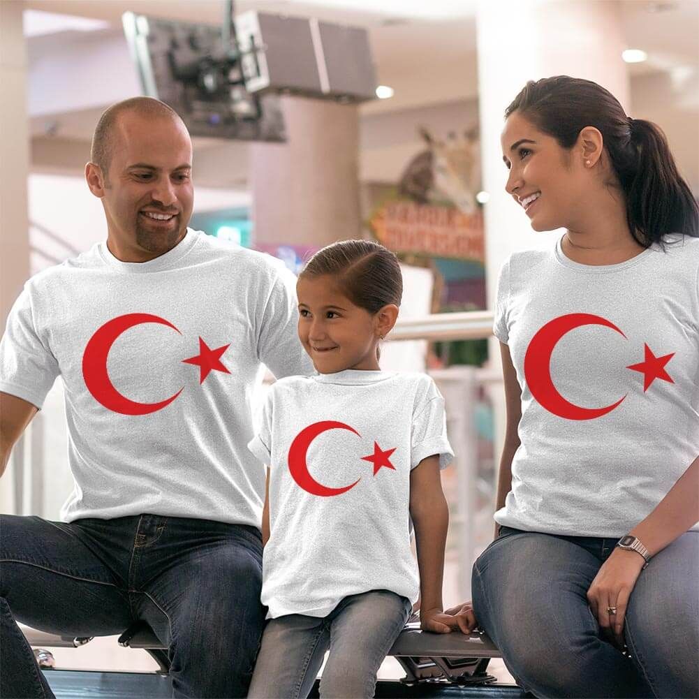 Ay Yıldız Anne Baba ve Kız Çocuk Tişört Kombini