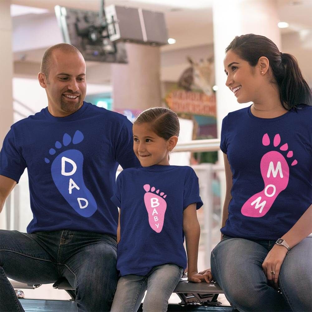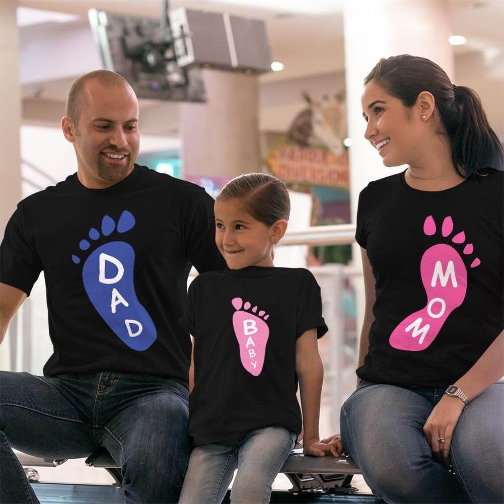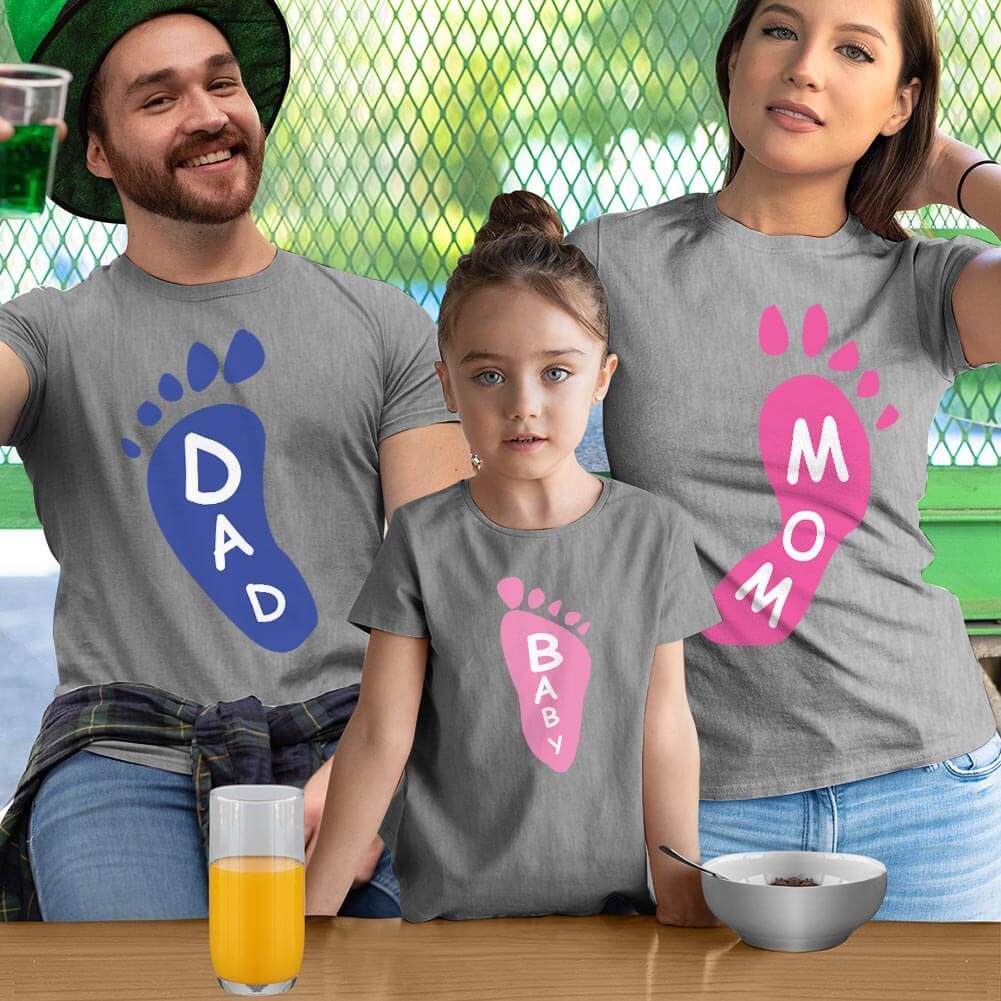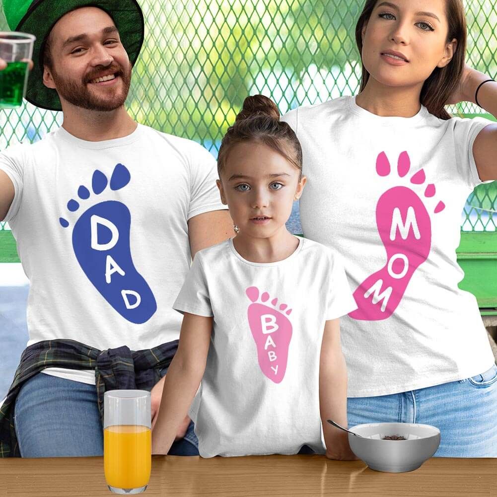 Ayak Baskılı Anne Baba Kız Çocuk Tişört Kombini