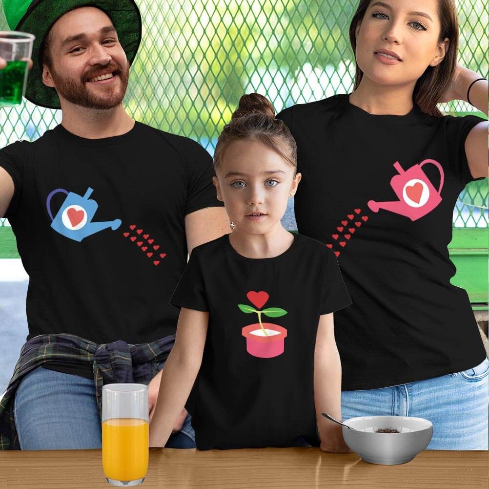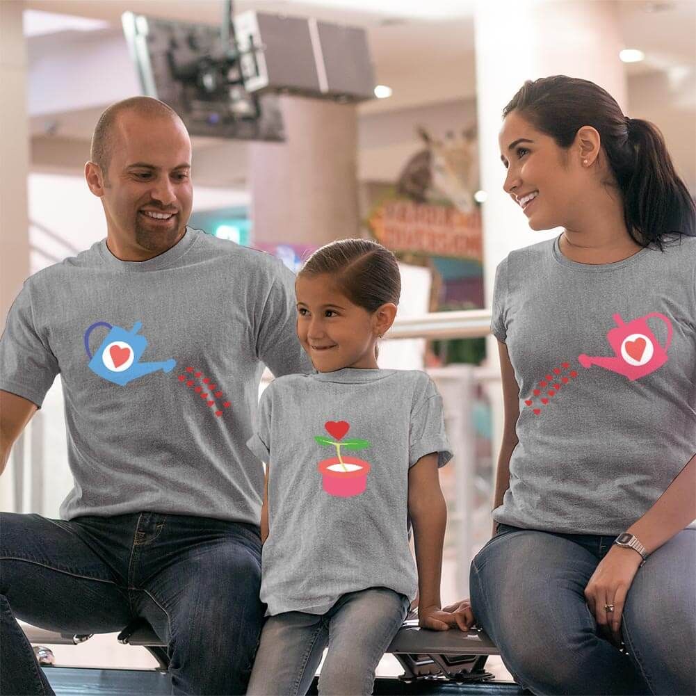 Büyüyen Sevgi Temalı Anne Baba ve Kız Çocuk Tişört Kombini