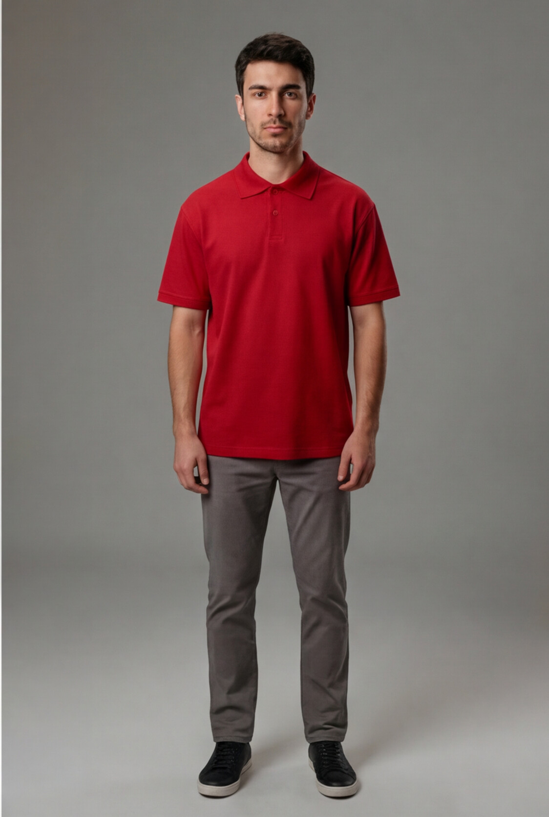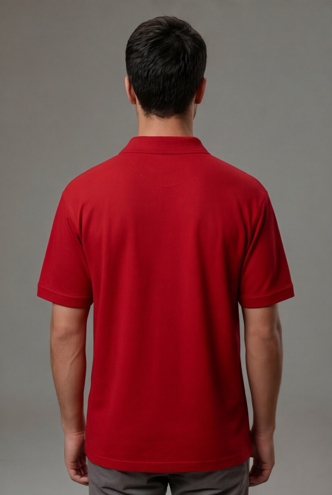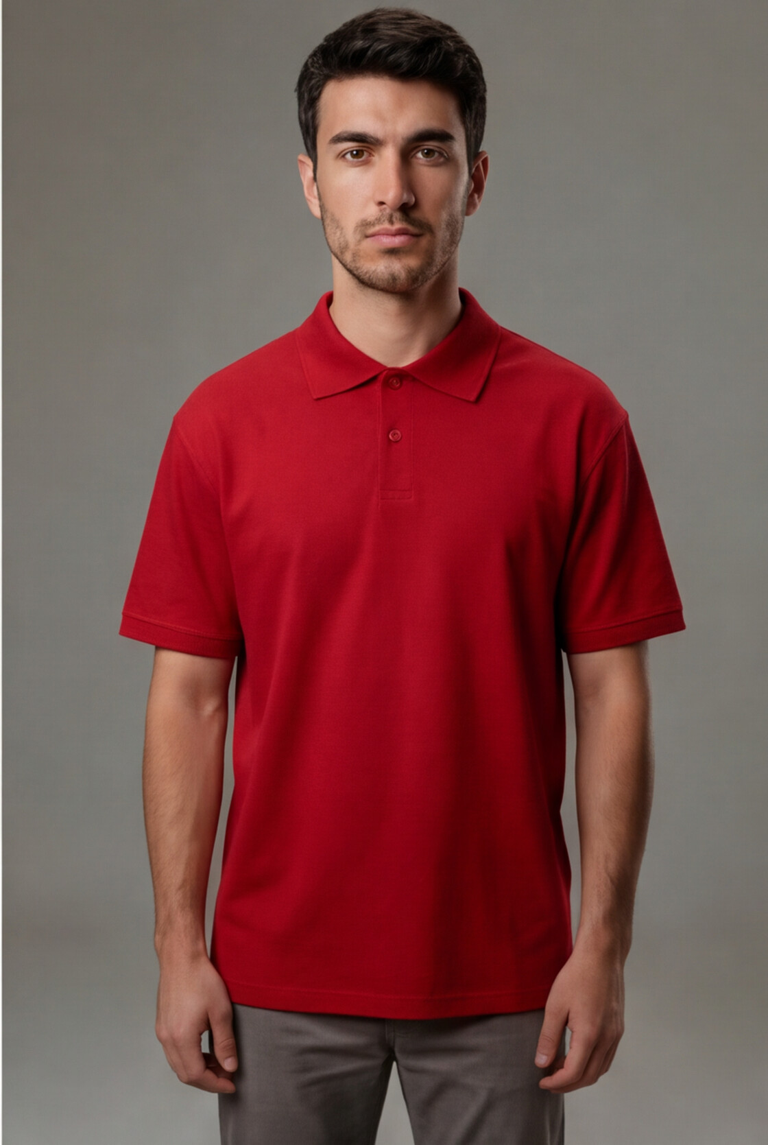 Erkek Polo Yaka T-Shirt Bisiklet Yaka Düz Kırmızı %100 Pamuk Pike Kumaş