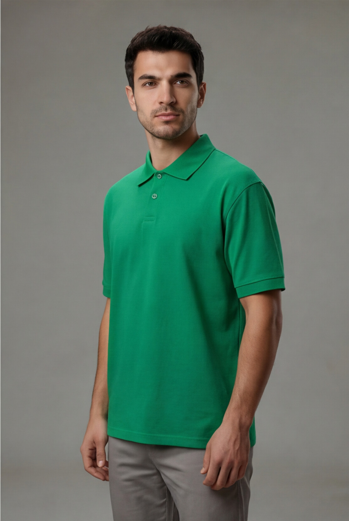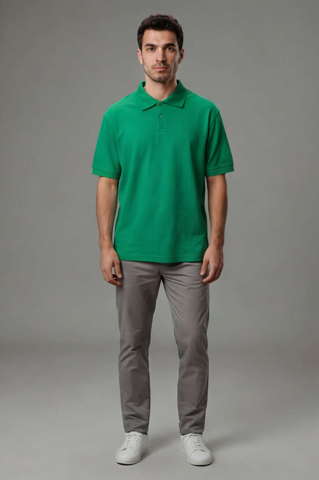 Erkek polo yaka t-shirt, %100 pamuklu pike kumaşıyla hem şık hem nefes alabilir bir kullanım sunar. Düğmeli polo yaka tasarımı ve kısa kol detayıyla günlük ve yarı resmi kombinlere kolayca uyum sağlar.