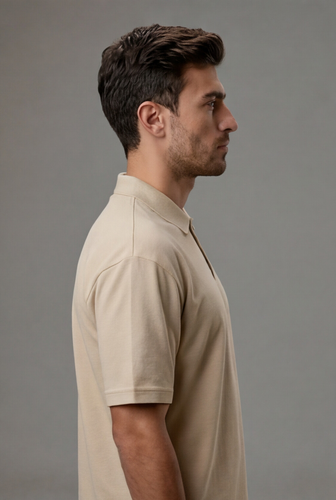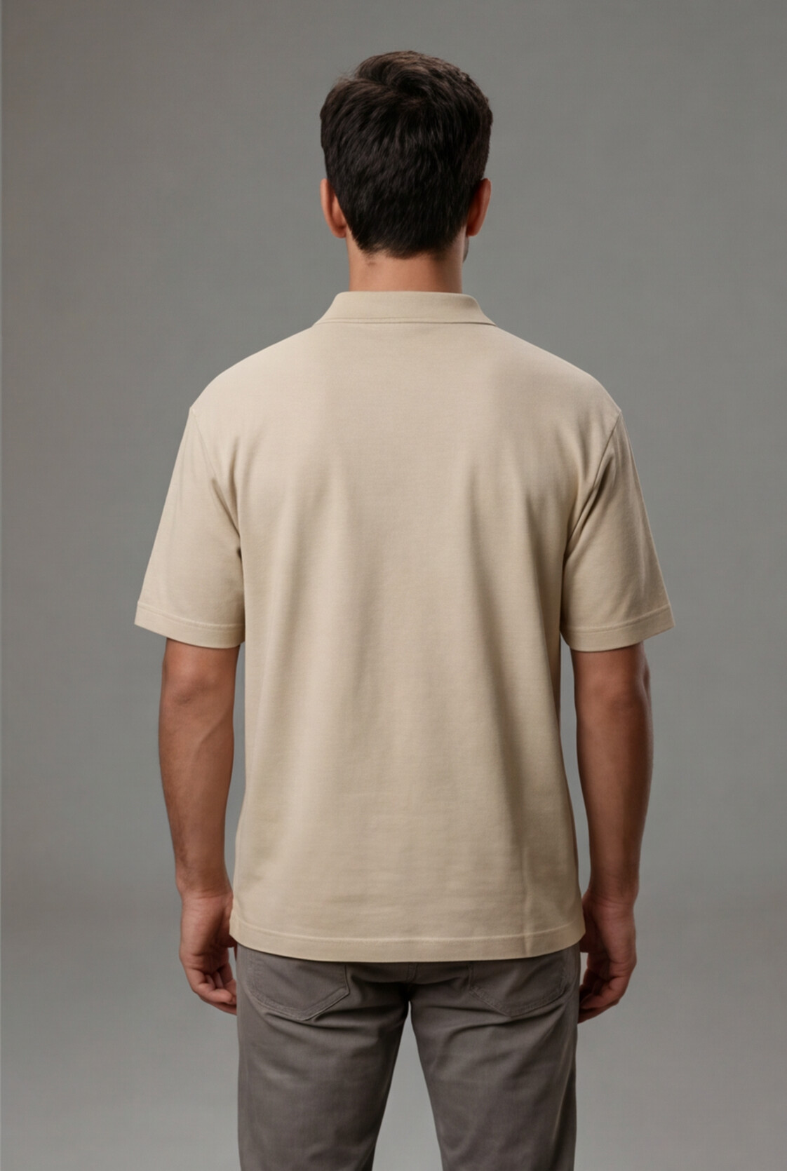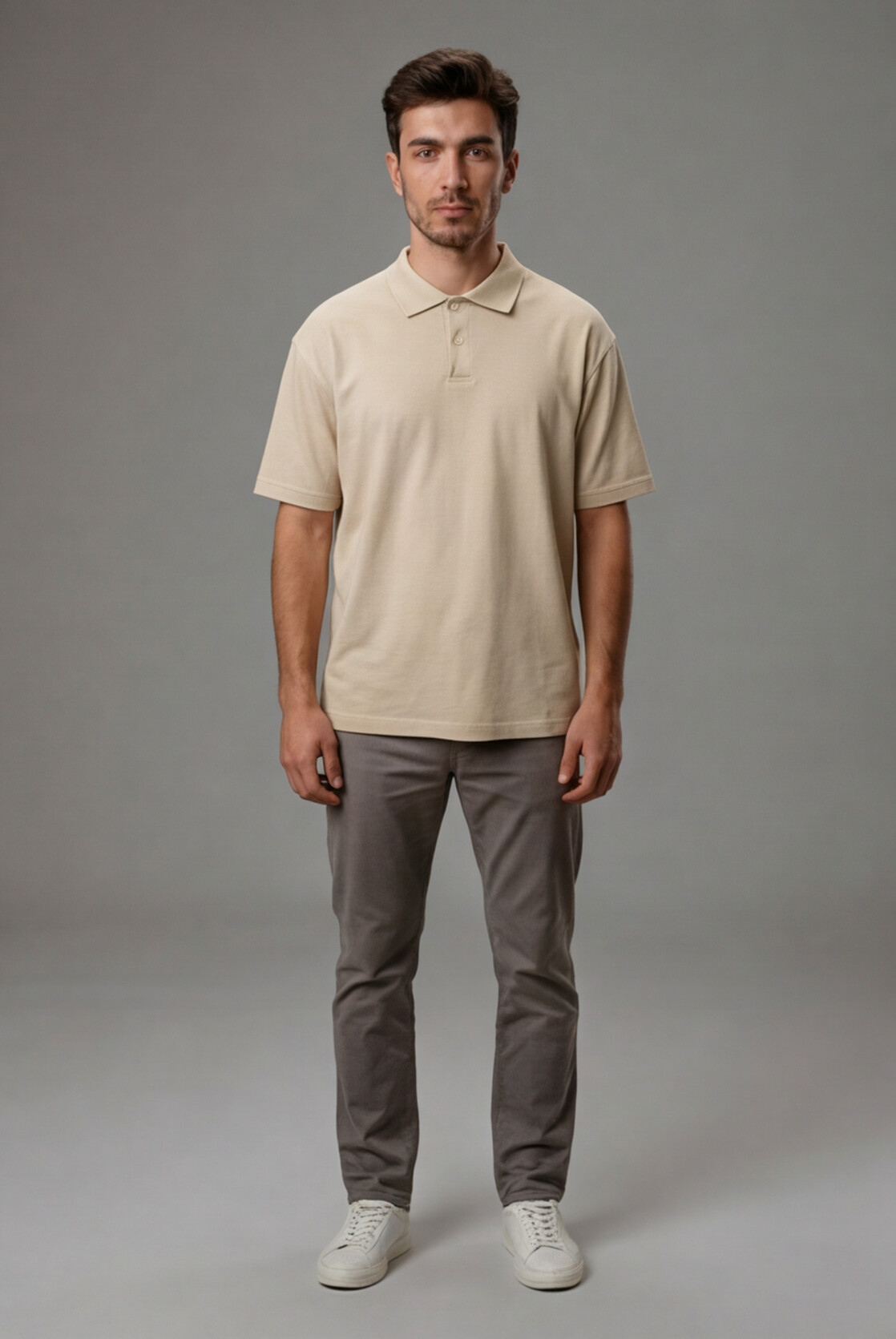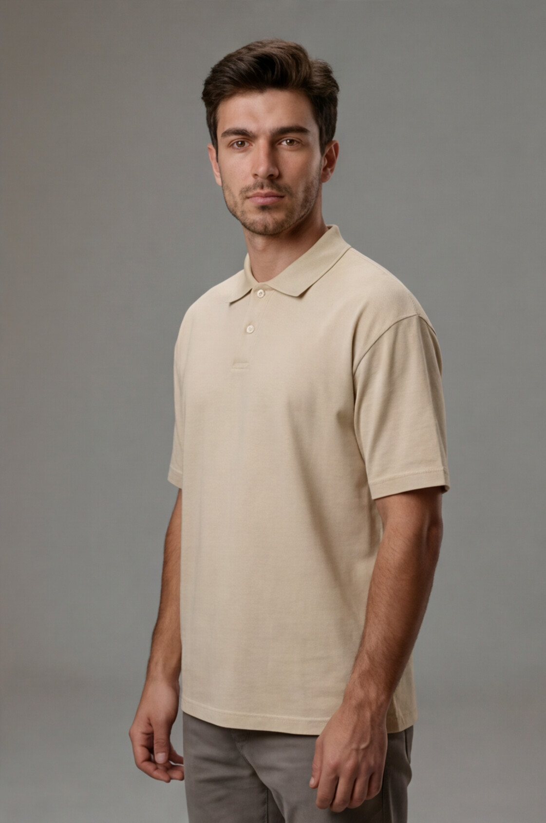 Erkek Polo Yaka T-Shirt Düz Bej %100 Pamuk Pike Kumaş