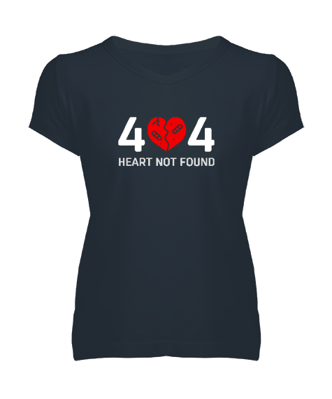 Error Heart Not Found - Kalp Bulunamadı Füme Kadın V Yaka Tişört