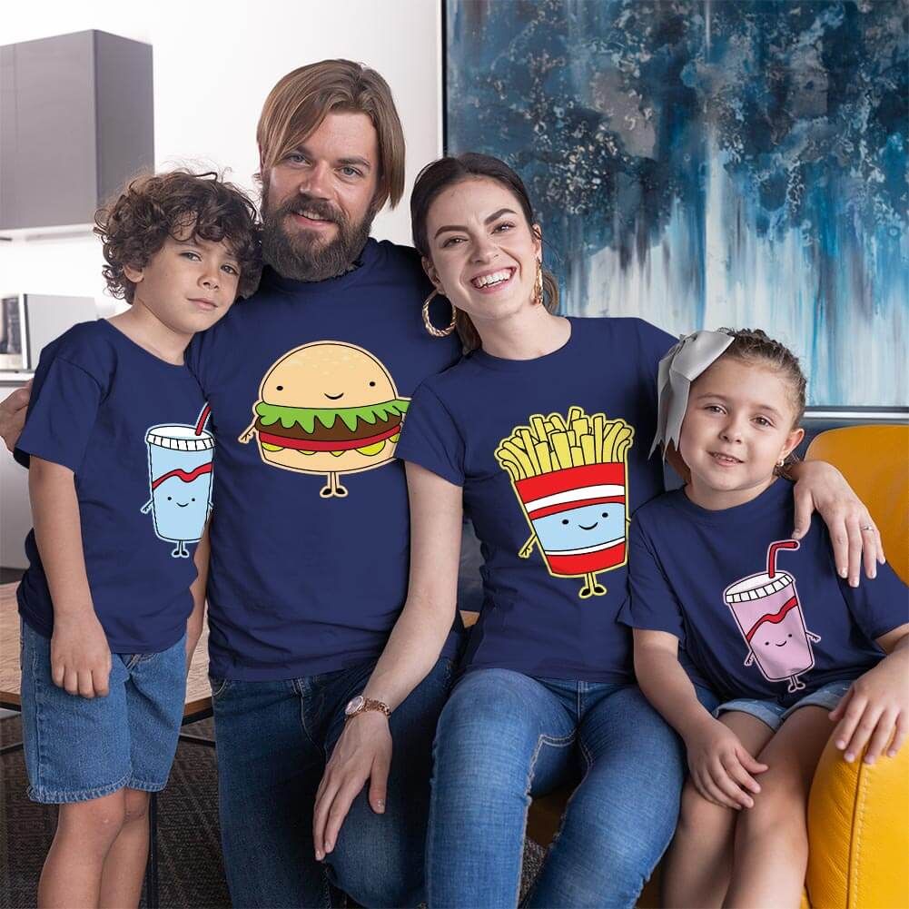 Fastfood Temalı Aile Tişört Kombini