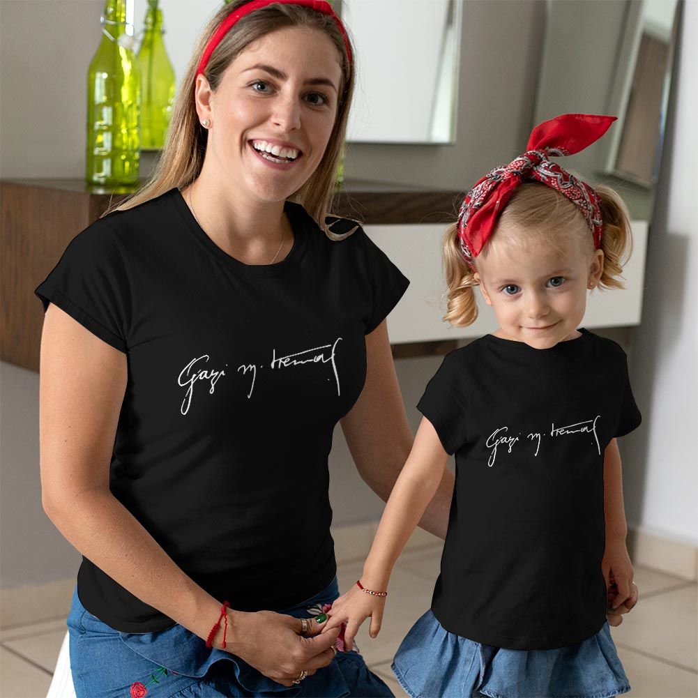 Gazi Mustafa Kemal İmzalı Anne Kız Çocuk Tişört Kombini