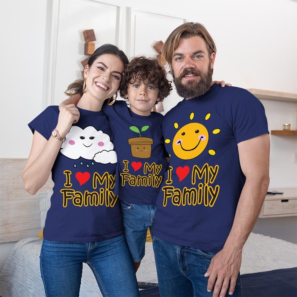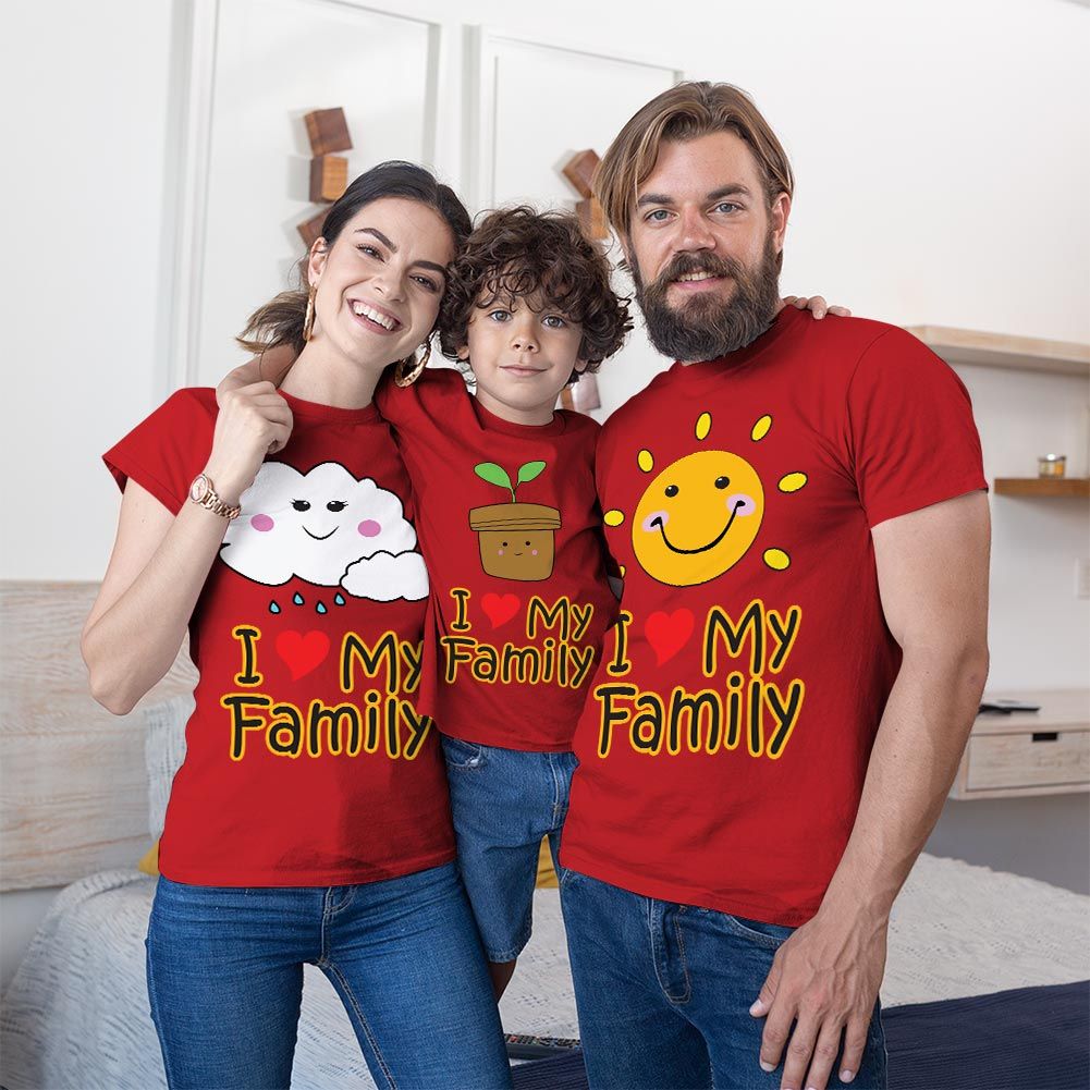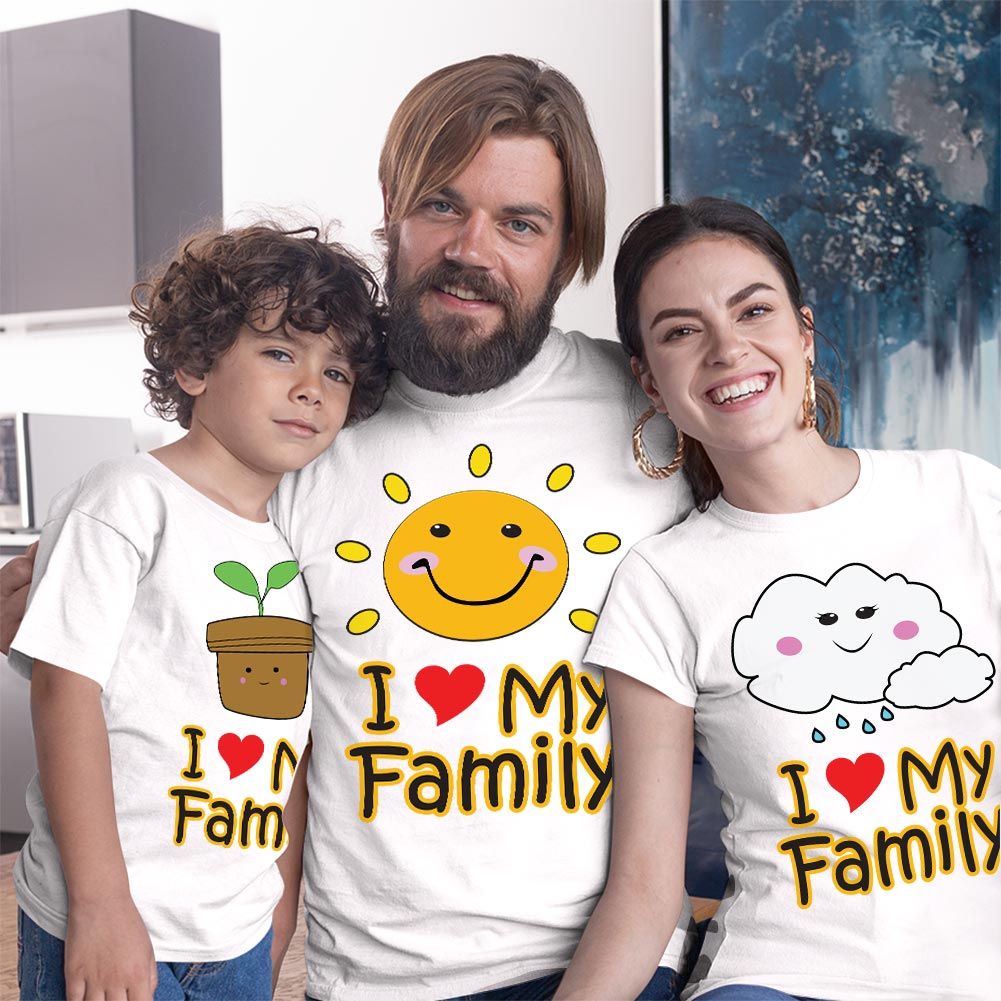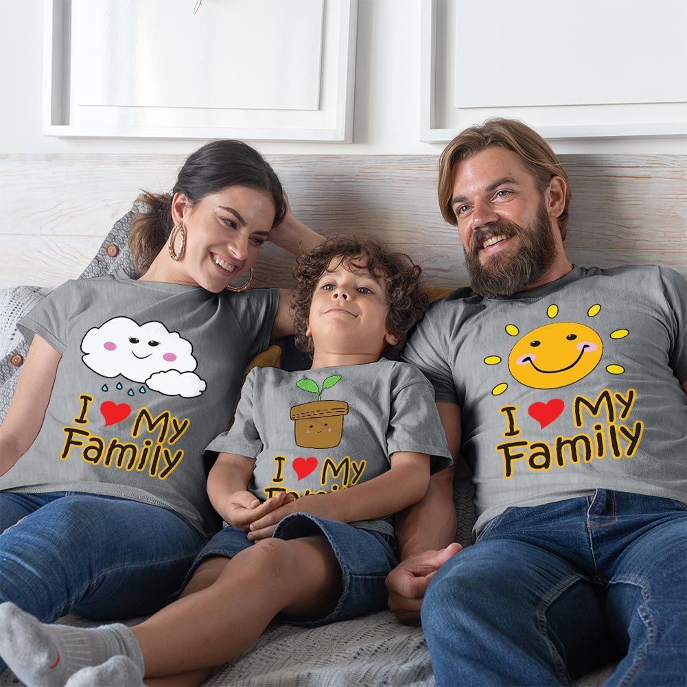 I Love My Family Anne Baba ve Erkek Çocuk Tişört Kombini