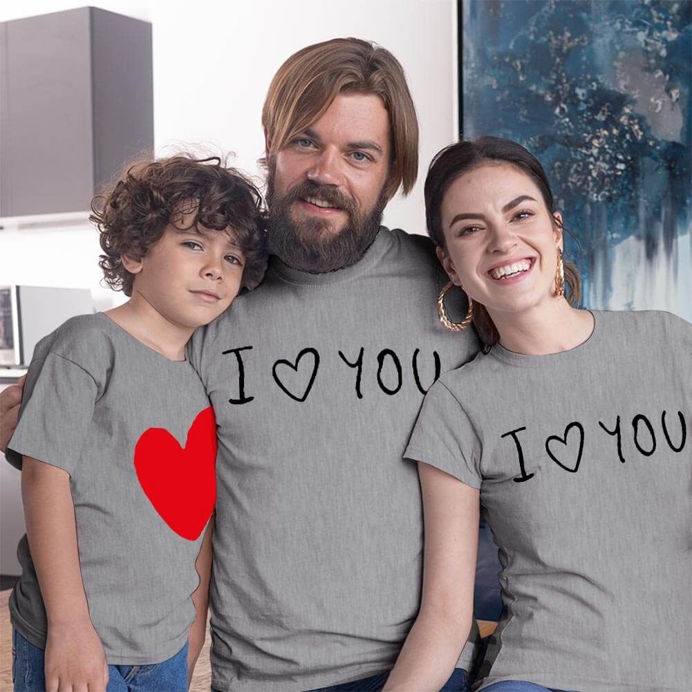 I Love You Anne Baba ve Erkek Çocuk Tişört Kombini