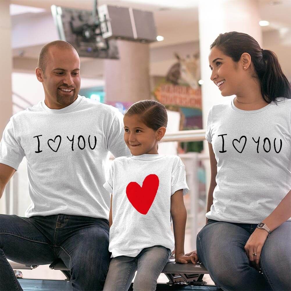 I Love You Anne Baba ve Kız Çocuk Tişört Kombini