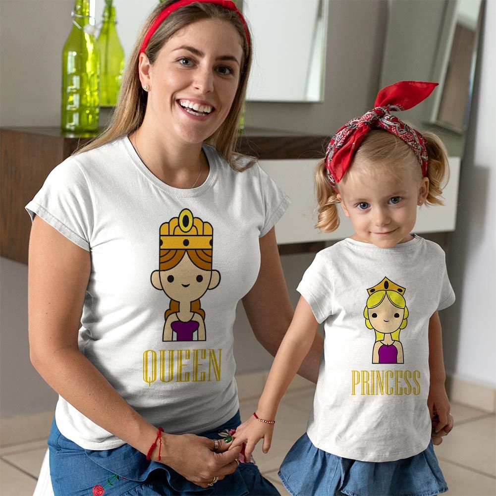 Kraliçe ve Prenses Anne Kız Çocuk Tişört Kombini