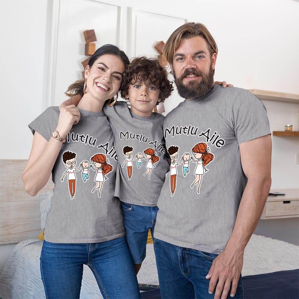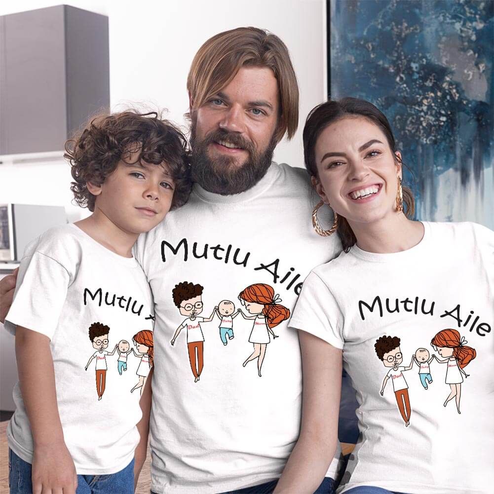 Mutlu Aile Anne Baba Erkek Çocuk Tişört Kombini