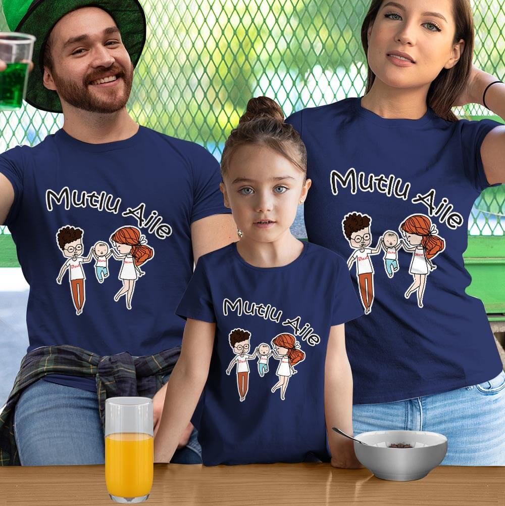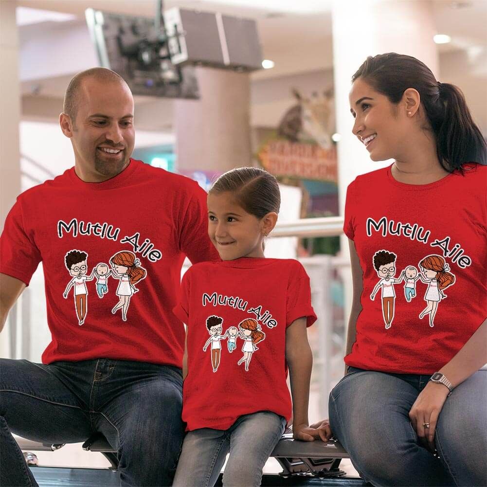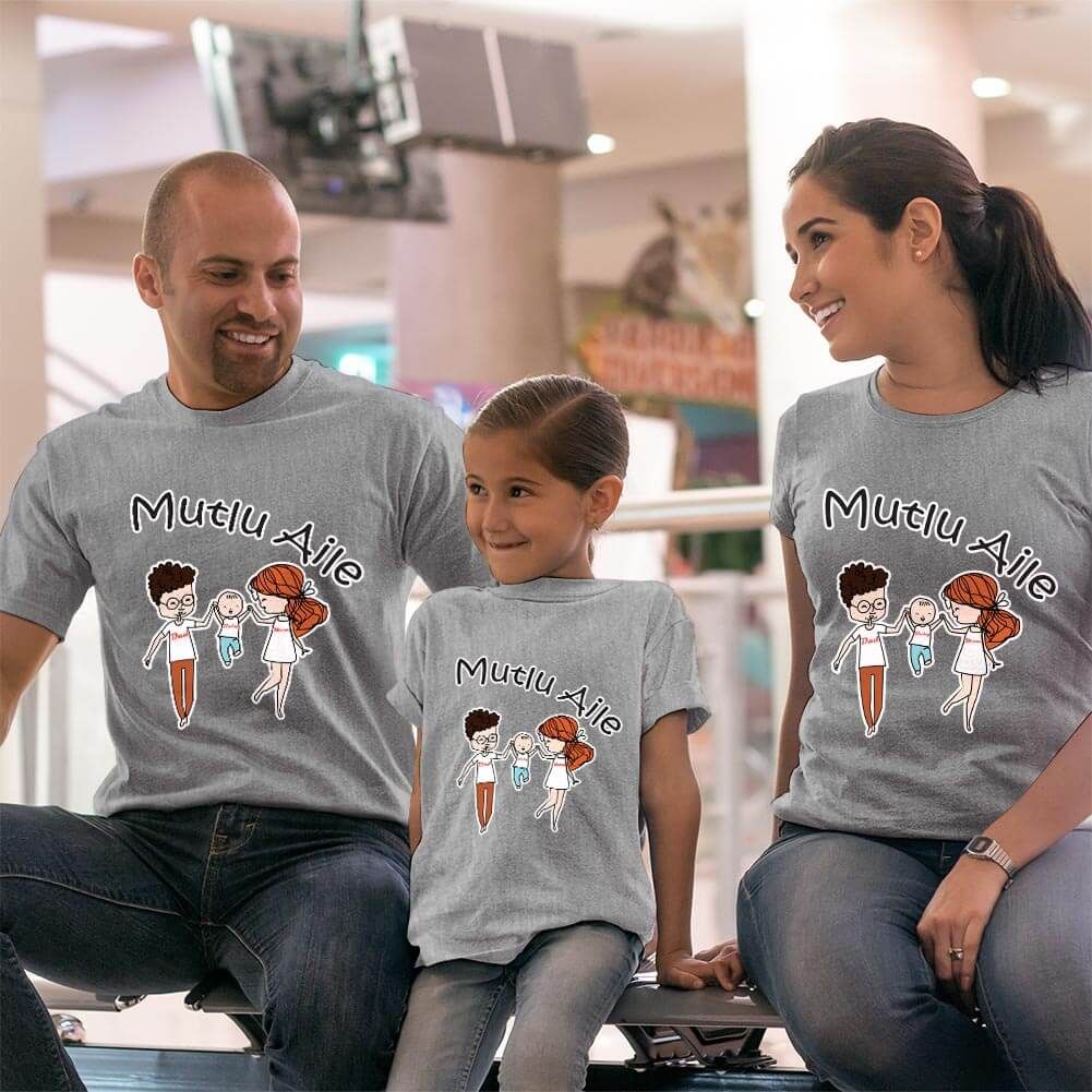 Mutlu Aile Anne Baba Kız Çocuk Tişört Kombini
