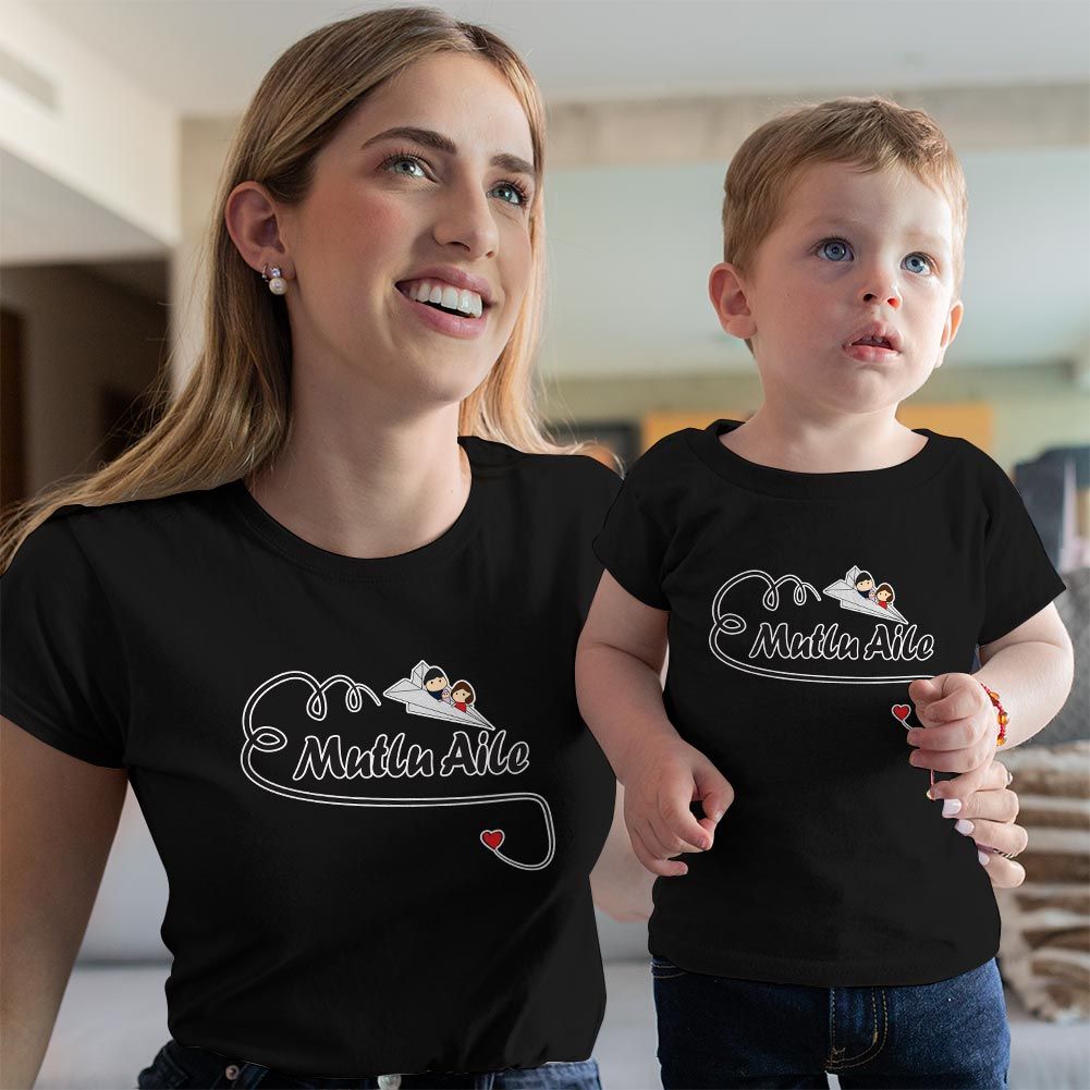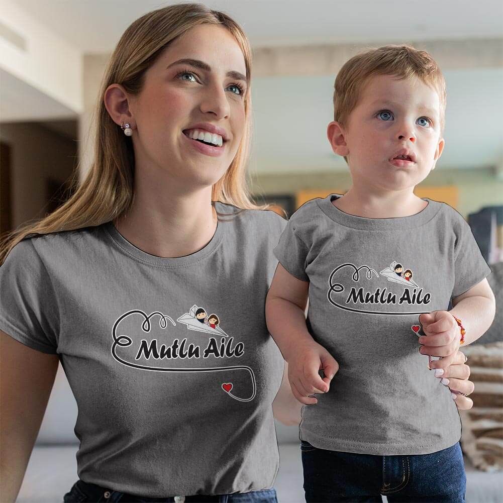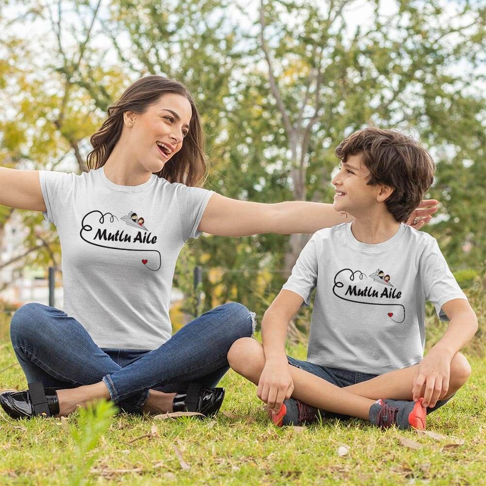 Mutlu Aile Temalı Anne Erkek Çocuk Tişört Kombini