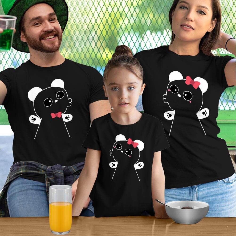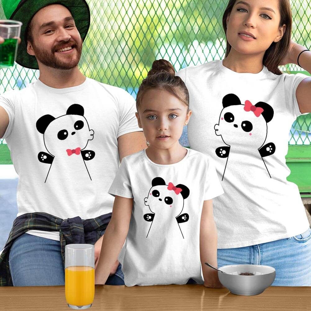 Panda Anne Baba ve Kız Çocuk Tişört Kombini