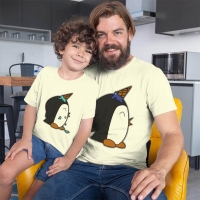 Penguen Baskılı Baba ve Erkek Çocuk Tişört Kombini