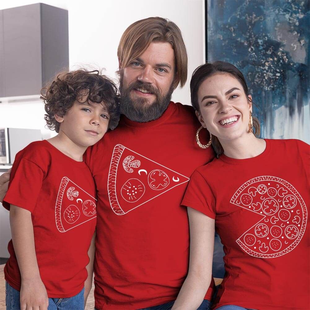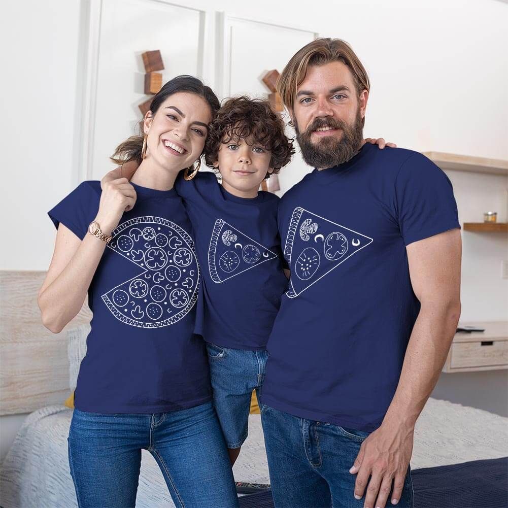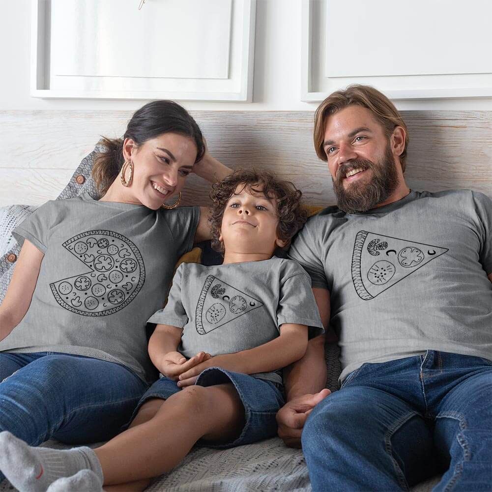 Pizza Tasarımlı Anne Baba Erkek Çocuk Tişört Kombini