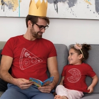 Pizza Tasarımlı Baba Kız Çocuk Tişört Kombini