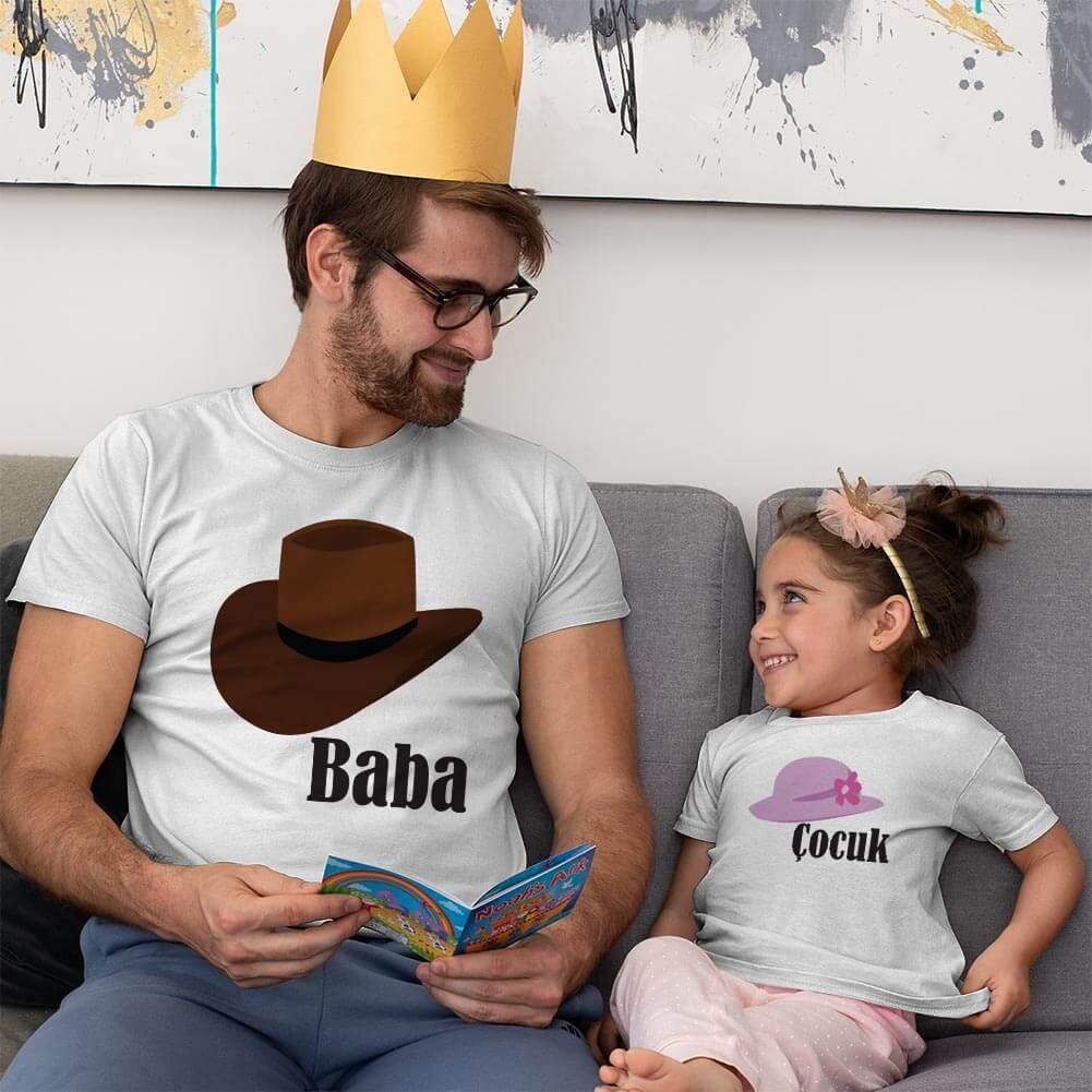 Şapka Temalı Baba Kız Çocuk Tişört Kombini