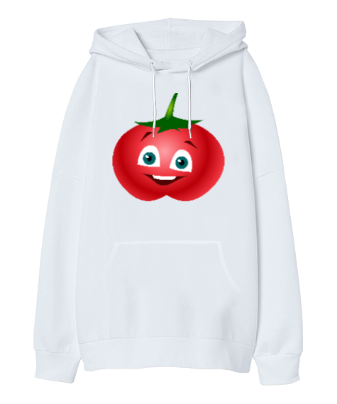 Sevimli Domates Oversize Unisex Kapüşonlu Sweatshirt