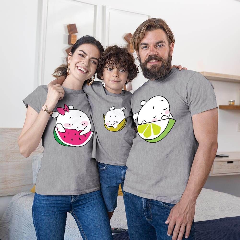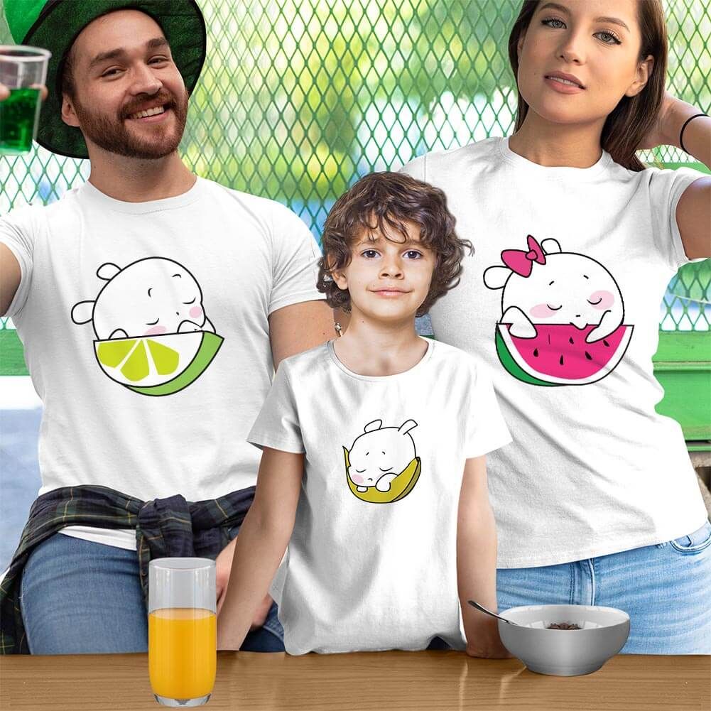 Sevimli Meyveler Anne Baba ve Erkek Çocuk Tişört Kombini