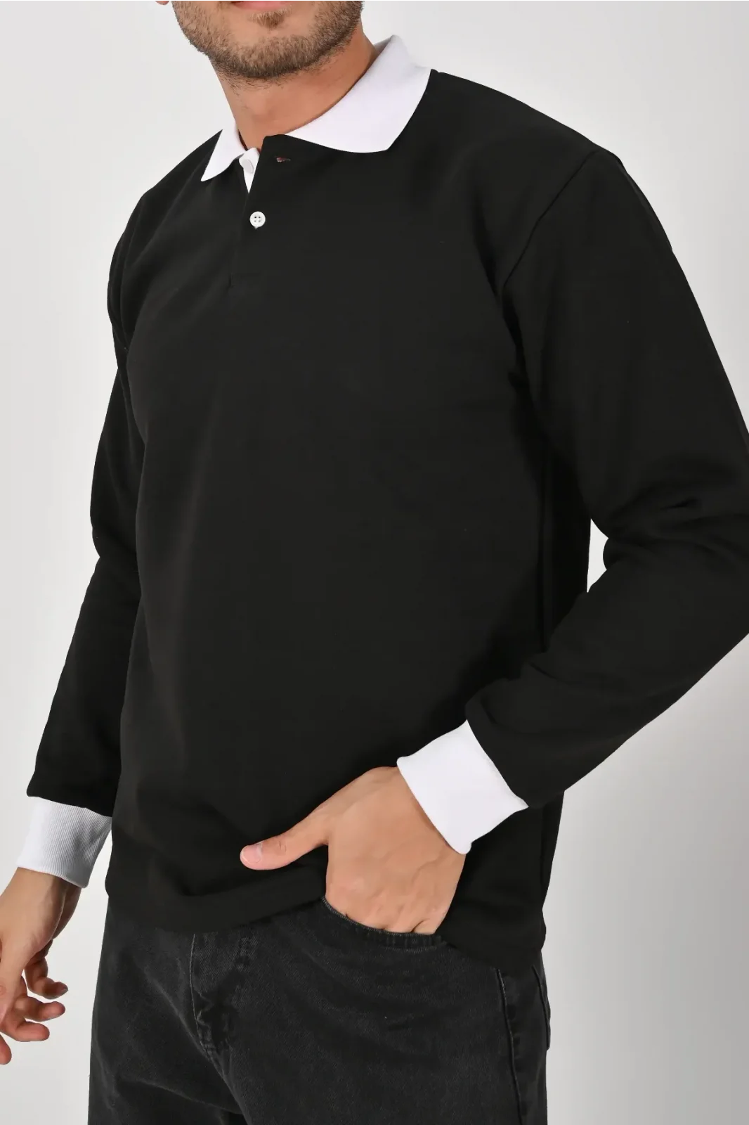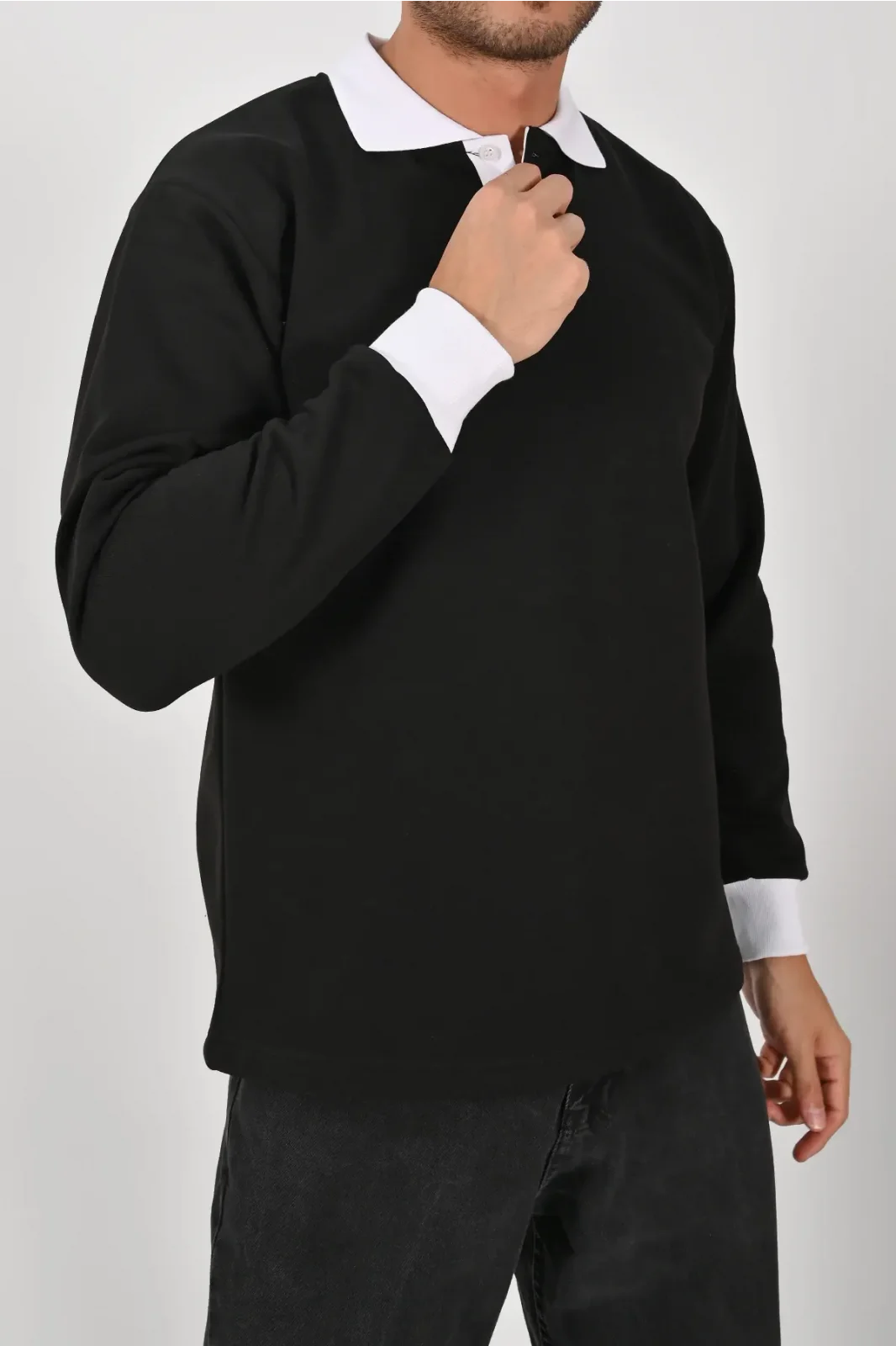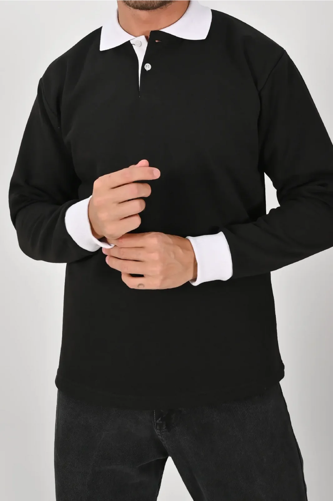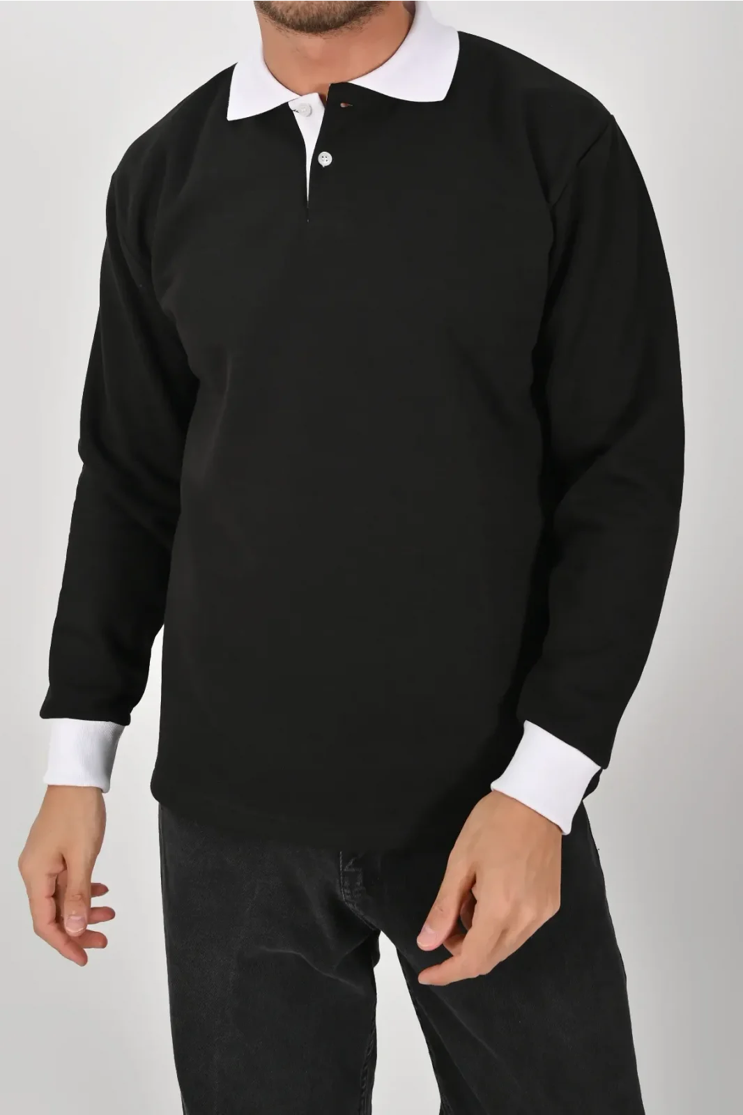 Zamansız siyah gövde ve kontrast beyaz yaka ile şık bir görünüm sunar. Unisex kesim, XS–5XL beden, kışlık yumuşak kumaş ve sağlam dikiş detaylarıyla işten günlük kullanıma kadar güvenle tercih edilir.