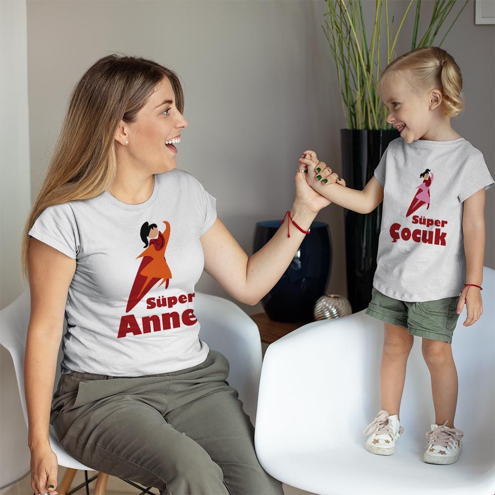 Süper Kahraman Anne Kız Çocuk Tişört Kombini
