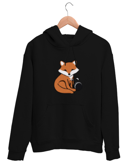 Tilki Siyah Unisex Kapşonlu Sweatshirt
