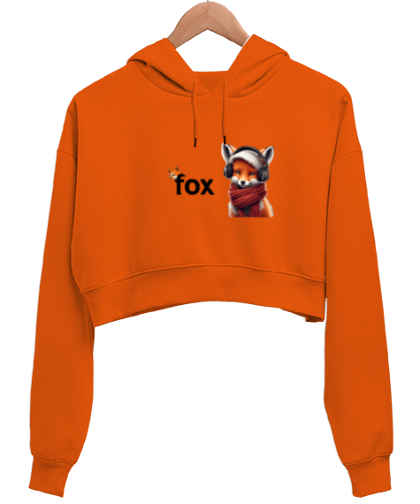 Tilki Turuncu Kadın Crop Hoodie Kapüşonlu Sweatshirt