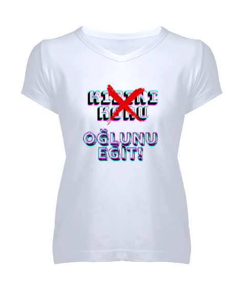 toplumsal mesaj Beyaz Kadın V Yaka Tişört