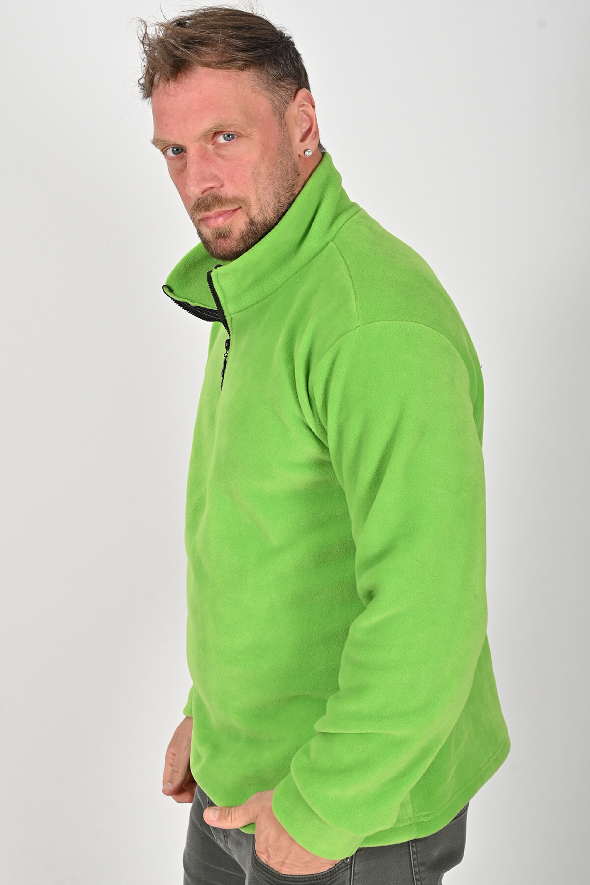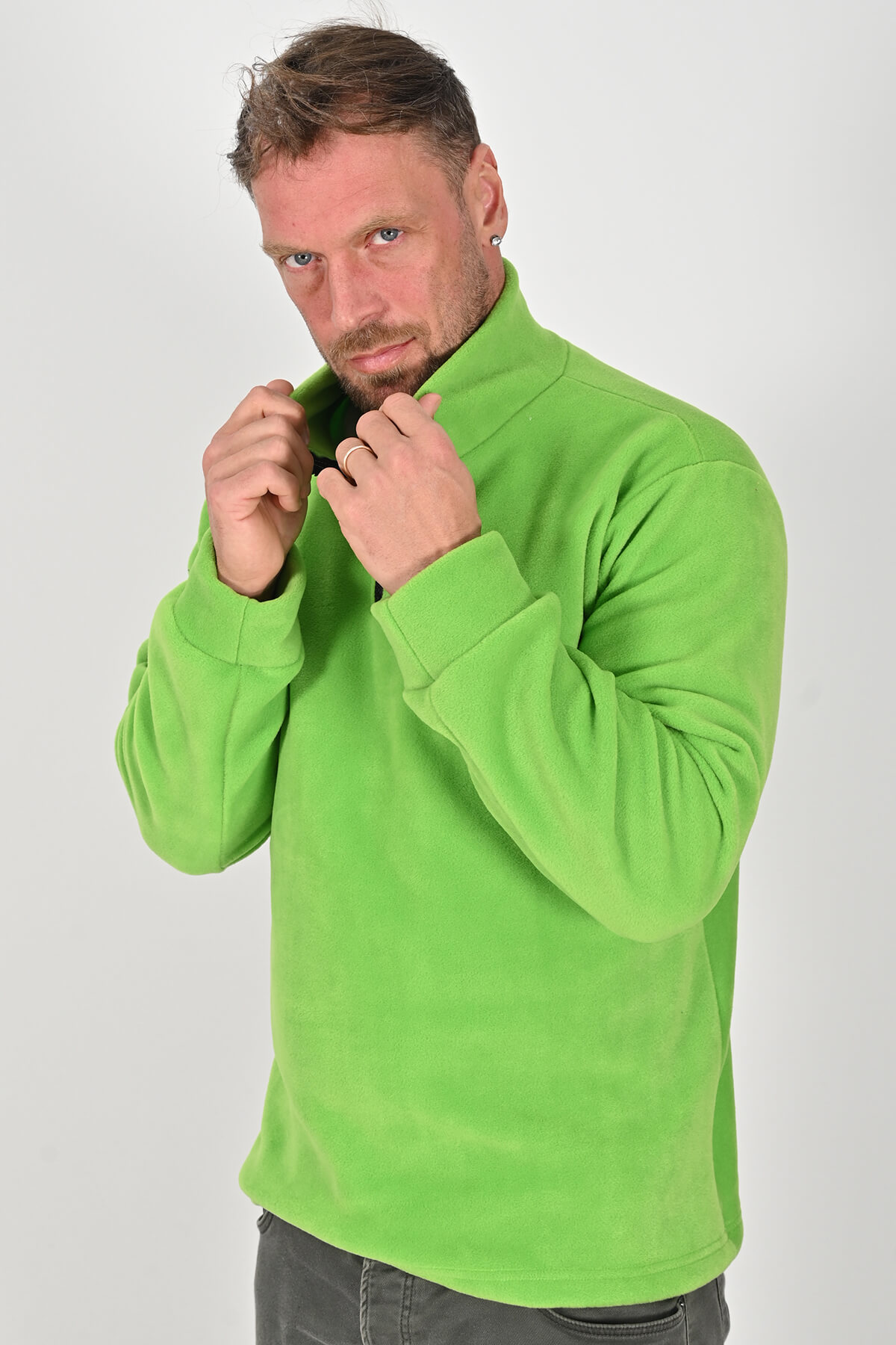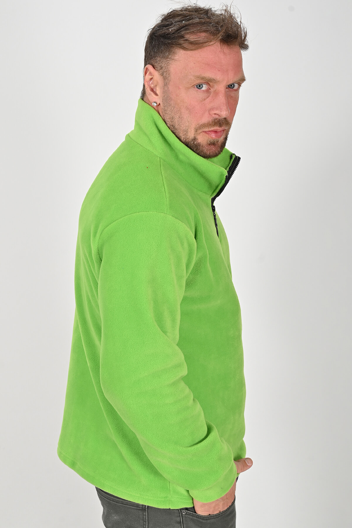 Soğuk havalarda şıklığı ve konforu bir arada sunan Yarım Fermuarlı Fıstık Yeşili Polar Mont, kaliteli polar kumaşı sayesinde uzun süreli kullanım için dayanıklıdır. Tüylenme ve çekme yapmayan yapısı ile ilk günkü formunu korur. Hafifliği ve ergonomik kesimi sayesinde gün boyu rahatlık sunar.