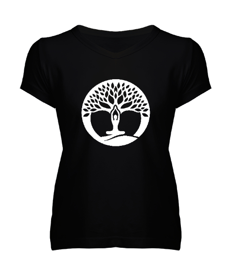 Yoga Meditasyon çakra om Siyah Kadın V Yaka Tişört